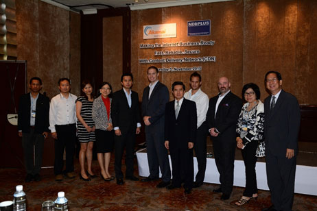 Akamai Technologies, Inc, the global leader in content delivery network (CDN) services, has launched seminar “ Making the Internet Business Ready Fast. Reliable. Secure with Content Delivery Network (CDN) at InterContinental Bangkok,Thailand on November 05, 2015. Woranun Chantawong General Manager (Fourth from left), Teerayuth Suprapunpinyo (Seventh from left) Director of Neoplus and Sakda Sarnrak Director of Neoplus (Eleven from left) Welcome to Akamai team. This seminar is designed to FSI and other Industry who focus on growing their business without worrying about the complexity of delivering Fast. Reliable and Secure online experiences for their users.